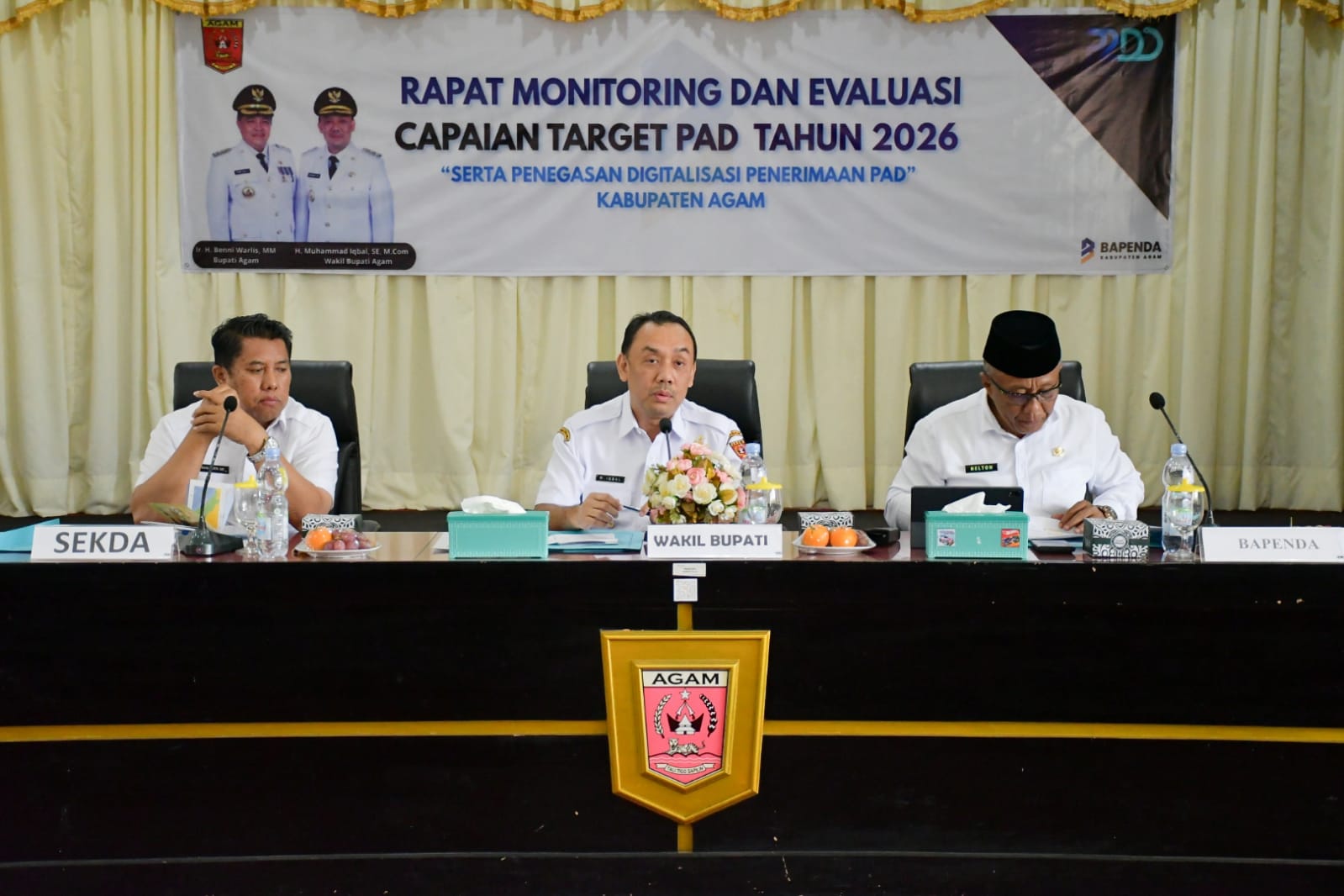 Hal itu disampaikan Wabup saat mengevaluasi capaian PAD Kabupaten Agam Januari-27 April 2026, di aula Kantor Bupati Agam, Rabu (29/4).